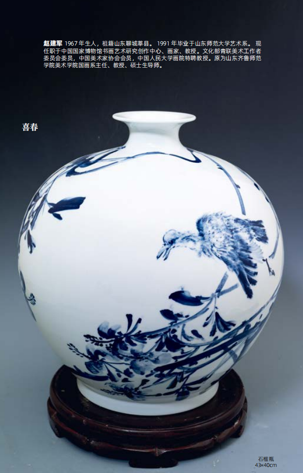 赵建军 1967年生人,祖籍山东聊城莘县。1991年毕业于山东师范大学艺术系。 现任职于中国国家博物馆书画艺术研究创作中心、画家、教授。文化部青联美术工作者委员会委员,中国美术家协会会员,中国人民大学画院特聘教授。原为山东齐鲁师范学院美术学院国画系主任、教授、硕士生导师。