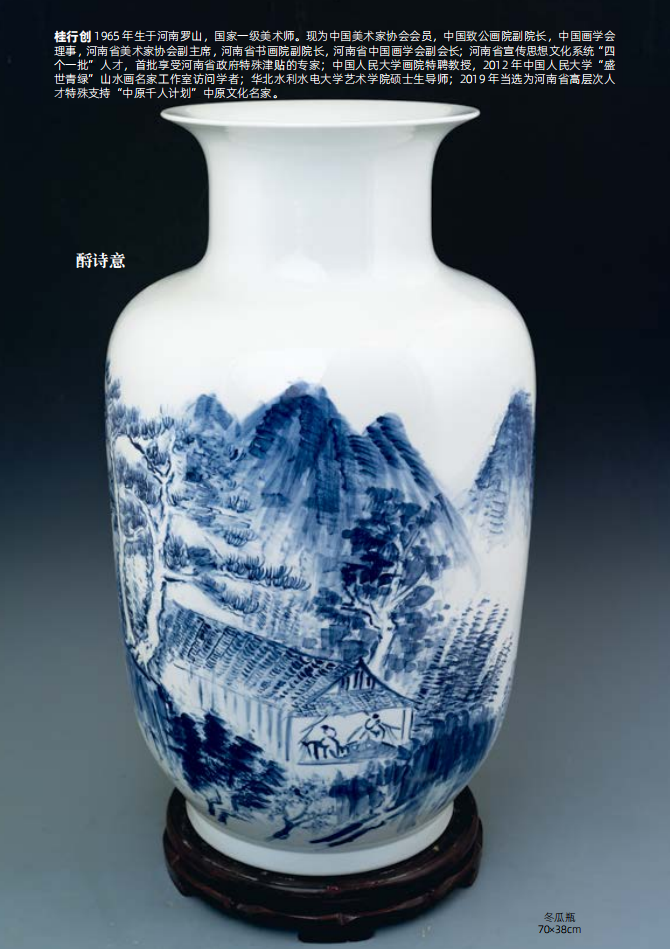 桂行创1965年生于河南罗山,国家一级美术师。现为中国美术家协会会员,中国致公画院副院长,中国画学会理事,河南省美术家协会副主席,河南省书画院副院长,河南省中国画学会副会长;河南省宣传思想文化系统“四个一批”人才,首批享受河南省政府特殊津贴的专家;中国人民大学画院特聘教授,2012年中国人民大学“盛世青绿”山水画名家工作室访问学者;华北水利水电大学艺术学院硕士生导师;2019年当选为河南省高层次人才特殊支持“中原千人计划”中原文化名家。