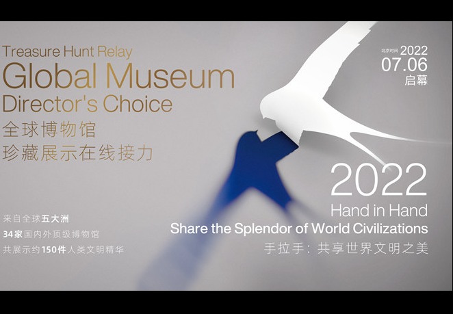 博物馆是保护和传承人类文明的重要殿堂,也是文明交流互鉴的重要平台。2022年7月6日至11日,中国国家博物馆联合国内外33家顶级博物馆共聚云端,以“手拉手:共享世界文明之美”为主题,共同举办全球博物馆珍藏展示在线接力。10位国内博物馆馆长将联袂讲好中国故事,传播好中国声音,并与来自五大洲的24位国际博物馆馆长一起,用约150件珍贵藏品展示人类文明的灿烂成果,传递和弘扬平等、互鉴、对话、包容的文明观,增强不同文明对价值内涵的认识的理解,推动构建人类命运共同体。