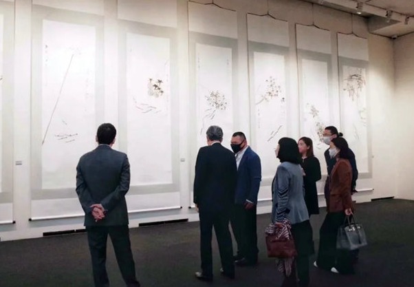 4月20日,中国驻日本大使孔铉佑、隈研吾、王传峰等中日嘉宾齐聚一堂,为“笔歌墨舞——王传峰画・隈研吾书”艺术展剪彩。日本众议院副议长海江田万里与前首相鸠山由纪夫携夫人前来观展。