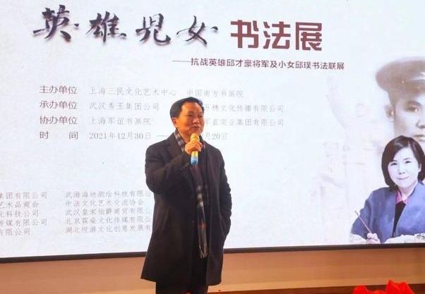 近日,“英雄儿女书法展——抗战英雄邱才豪将军及小女邱璞书法联展”的开幕式在上海崇明江南三民文化村举行。