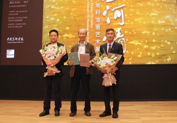 2021年9月16日上午,“山河情——马常利油画艺术展”于中央美术学院美术馆揭开帷幕。正值中央美术学院老教授马常利先生九十大寿,中央美术学院油画系师生为老先生精心准备了生日祝福,师生齐聚,情意绵绵,共祝先生创作长青。