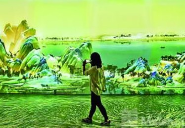 日前,参观者在“画游千里江山——故宫沉浸艺术展”上参观拍照。