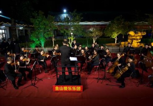 2024年9月14日夜,在天坛公园老东门外的燕京书画社美术馆举行“盛世中华——柴京津国画展”之际,美术馆外的大院里,明月朗照,秋风静谧,灯光璀璨,来自全国各地的书画艺术家、企业家等嘉宾聚集一堂。被誉为北京书画家之家的著名书画机构燕京书画社,正在隆重举行中秋赏月交响音乐会。 著名指挥家张冰冰担纲指挥 这次交响音乐会,由著名指挥家、国家一级指挥、金山爱乐乐团工作委员会主席张冰冰先生担纲指挥。 张冰冰先生是一位品位高、有思想艺术高度的指挥,他的指挥技艺精湛,在冷静与激情中转换自如而潇洒。有西方评论家曾评述道:他有一双会说话的手,他指挥的每一个动作都细致入微,传达着对音乐的诠释。在三十多年的指挥生涯中,他善于挖掘音乐内在的本质,把音乐和文学、绘画、历史、建筑等人文社科有机地联系在一起,对不同时期、地域和国家的作品风格把握得非常精准到位。他尤其对声音的融合与平衡有着独到的见解,并得到众多专家和同行的认可,被誉为“控制声音的魔术师”。 著名指挥家张冰冰音乐会现场剪影 张冰冰先生也是当今国际知名的指挥家,每年指挥近百场音乐会。自2019年以来,他一直是CCTV-1《国际艺苑》栏目的主讲嘉宾和艺术顾问,也是中央广播电视总台《文艺之声》古典音乐栏目的长年主讲嘉宾,新华社等主流媒体均评赞他为中国的“古典音乐传教士”。 石占成社长激情演说 燕京书画社社长石占成就这次中秋赏月交响音乐会活动的目的和意义作了激情生动演说。他希望通过这次交响音乐会的演出,能够进一步推动书画与音乐的结盟,用最好的精神食粮,不断服务于千家万户的老百姓的文化生活需要,打造京城新的文化生活业态。 易孟林常务副会长介绍交响音乐会相关情况 中国社会主义文艺学会常务副会长易孟林在演出开始前,介绍了交响音乐会举办的相关情况。他说,燕京书画社在京城艺术领域是一个奋斗的传奇。从80年代创业至今,代代相传,一直贯穿着与时俱进、勇于创新的精神,成为了文化艺术战线一面光彩夺目的旗帜。他介绍道,中国社会主义文艺学会是全国性国家一级专业文艺社团,1992年8月经文化部批准,民政部核准登记成立。中宣部原副部长、文化部原部长贺敬之同志为名誉会长。学会下辖十四家分支机构,作为燕京书画社的战略合作伙伴,专注于在书画、音乐等艺术领域精诚合作,力争在文化底蕴深厚的京城共同打造出新时代的新文化生活业态。 宋伯军副主席主持活动 中国社会主义文艺学会书画专业委员会副主席、著名书法家宋伯军主持了这次演出活动。他对这次交响音乐会的演奏艺术家给予了高度评价,并非常赞赏将书画艺术和音乐艺术有机结合,积极进行打造新文化生活业态的有益探索和尝试。 金山爱乐乐团担纲演奏 这次中秋赏月交响音乐会,由中国社会主义文艺学会所属的金山爱乐乐团担纲演奏。金山爱乐乐团是学会专门从事交响乐创作、研究和传播的分支机构。该乐团多次在北京音乐厅、中山音乐堂、国图音乐厅等演奏中国和世界名曲,获得社会听众广泛赞誉。尤其是去年远赴新疆,在乌鲁木齐、石河子、阿克苏等地连演五场世界名曲交响乐,真实践行了习近平总书记关于“文化润疆”的讲话精神。 中秋赏月交响音乐会剪影之一 中秋赏月交响音乐会上,不仅演奏了大家耳熟能详的中国名曲,比如《花好月圆》、《彩云追月》、《草原夜色美》、《瑶族舞曲》、《梁祝》(选段)、《步步高》,还有《森吉德玛》、《晚会》、《良宵》等,还演奏了世界名曲《金银圆舞曲》、《莫扎特第三十五(哈夫纳)交响曲k.385第一、第二乐章》、《爱的致意》、《第二圆舞曲》等。有嘉宾听入了迷,竟情不自禁地飘飘起舞。交响音乐会终了,人们仍依依不舍离去。艺术家、企业家和嘉宾们纷纷赞誉这次活动别开生面,堪为露天交响音乐会演出的标杆典范,并对今后不间断地举办类似文化交流活动充满期待。