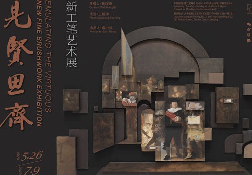 2023年5月27日下午,展览“见贤思齐:新工笔艺术展”在大千画廊正式开幕。展览由美术学博士、中国美术馆研究馆员魏祥奇担纲策展,展出包括中国艺术研究院工笔画院院长张见和他工作室的青年艺术家叶紫、孟哲、刘志蕾、毕晓慧、王晴园、金金、栗玉莹、杨怡、刘小锋、胡箫桐共同创作的工笔绘画装置《当<夜巡>来到中国》等在内的作品20余件。