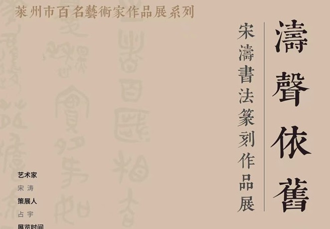 2023年6月9日上午9:30,由莱州市委宣传部、莱州市文化和旅游局、莱州市文学艺术界联合会主办,莱州市文化馆承办,北京端艺文化传媒有限公司、今日鉴藏美术馆、山东成雅文化传播有限公司协办,占宇策展的“涛声依旧”宋涛书画篆刻作品展,在莱州市民之家四楼文化馆展厅举办。