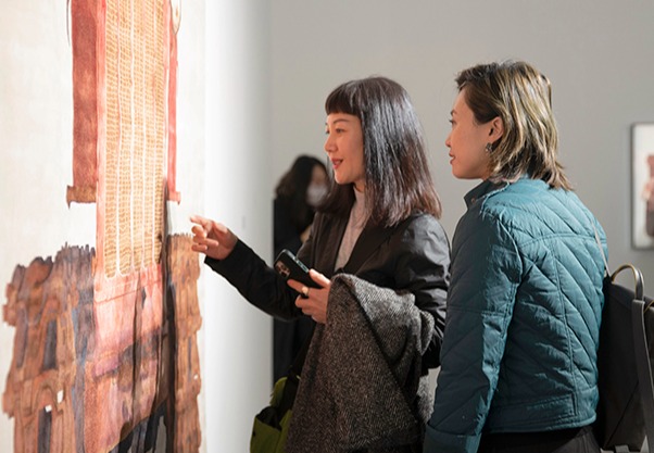 检票口处,响起火车进站的鸣笛声,手持一张绿色车票,亲赴一场“美丽中国”的文化之旅——2023年2月28日,由中国美术学院主办的“大地之歌——2023美丽中国纪事”展在中华世纪坛艺术馆开幕。