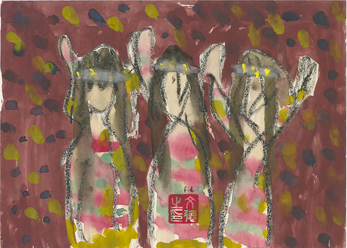 当皮埃尔·布列兹 (1925-2016) 被问及其音乐时,他常回答: “我无法用文字来谈论音乐,否则我将成为作家,而非作曲家。”“我对艺术也有同样的感觉。然而,作为一名学者,演说也是我的工作。”文德在采访时说到。因此,艺术创作似乎成为文德学术著述的一种有利注解,通过视觉形式更加直观而有效的补充文字的指涉,本次展览中的部分作品即将出现在他明年的著作中。而主攻跨文化交流研究的他,更善于在沟通中锁定眼神的互动并加入大量肢体语言,他对颜色的选择也准确的诠释着情绪的表达。