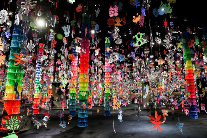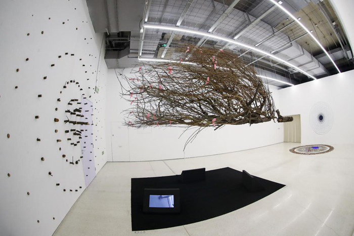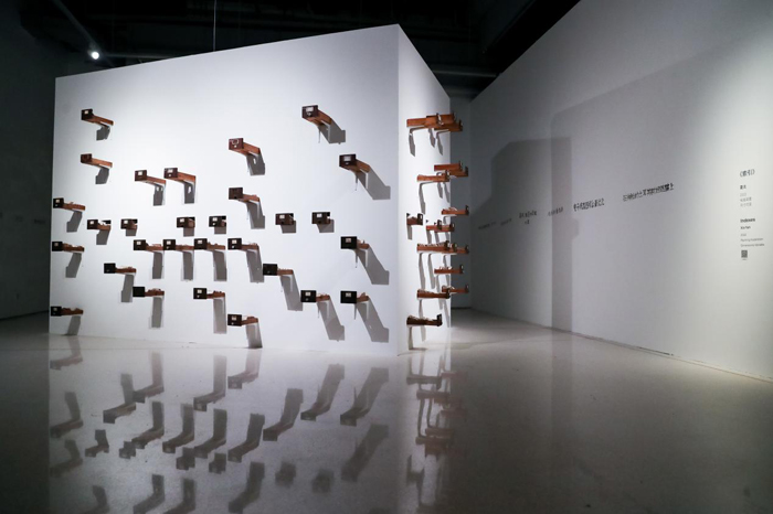 第三单元“声振”主题将内外视角进行有机结合,回荡出过去、现在与未来的生命强音。本单元以生命为核心,探讨人类文明与信仰的传承中,声音如何跨越个体生命的长度,共振出当代与传统的联接。纸做的艺术家陈粉丸带来全新作品《剪纸宇宙》,将过去十年中创作过的剪纸纹样以“树”的方式“生长、联接”在一起。跳跃的颜色、镂空的剪纸与无限的镜像,带来诗意和美的享受。艺术家郑靖的《时空回响-黔中》,结合贵州当地采集的方言童谣、坊间叫卖声与现代城市等不同声音,以儿时的镜面反光游戏,将时间与空间、历史与当下置于同一维度的声景之中,碰撞出生活与文明的共振,唤起刹那即永恒的乡愁。艺术家夏炎的绘画装置《索引》,借由20世纪80年的图书馆索引柜,希望通过“索引”的方法,建构一套能检索问题的逻辑系统,将我们当下每一刻的发生进行归纳与存储,将过去、现在、以及未来紧密相连。
