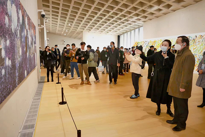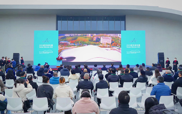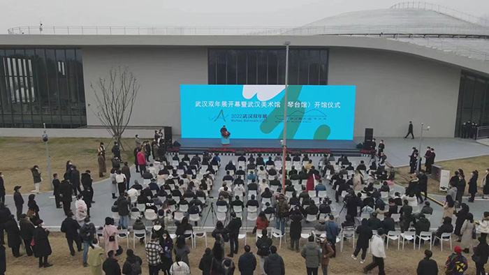 2022年12月28日上午,“艺以通衢——2022武汉双年展”在武汉美术馆(琴台馆)启幕。武汉市委常委、市委宣传部部长吴朝安在开幕式上致辞,并宣布武汉双年展开幕暨武汉美术馆(琴台馆)开馆。在为期近半年的时间里,将有来自中外285位中外艺术家及团队的446件(组)优秀艺术作品展出,包含了绘画、雕塑、影像装置艺术、新媒体艺术、科技艺术以及艺术设计等多种艺术形式。