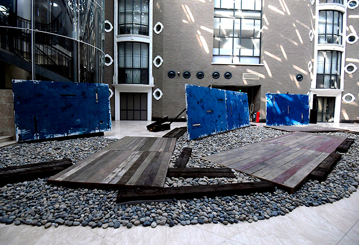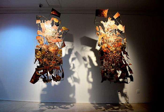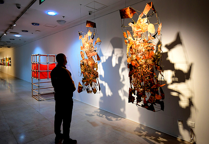 武汉美术馆(汉口馆)主要展出“绿色生态”单元,共计有55件(组)作品在此展出。39位中外艺术家围绕“绿色生态”这一专题,用绘画、雕塑、装置、数字影像等不同艺术语言进行诠释。