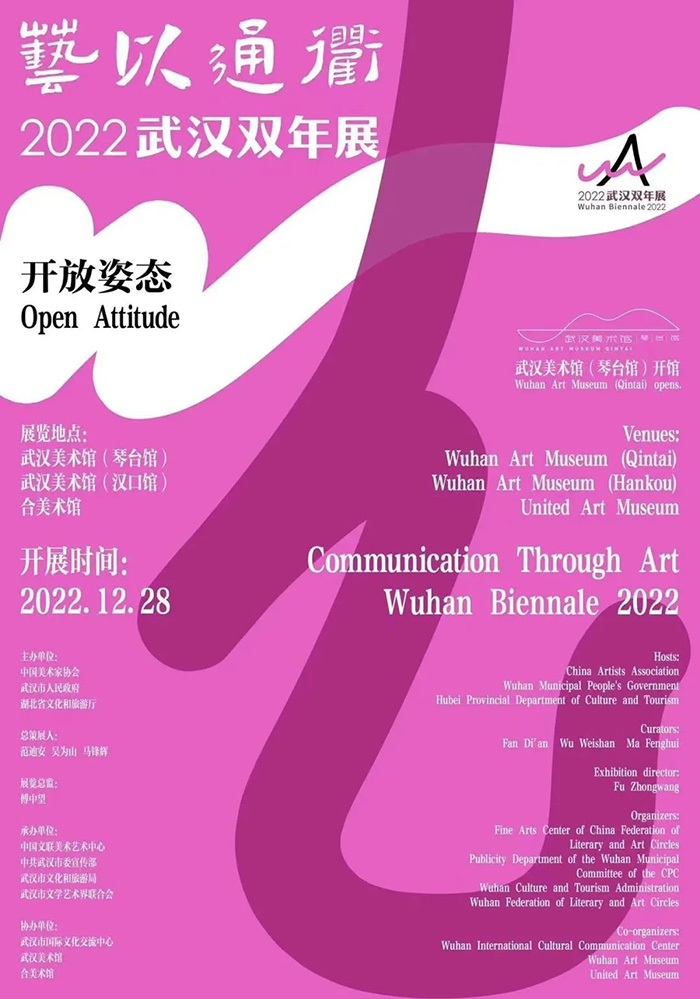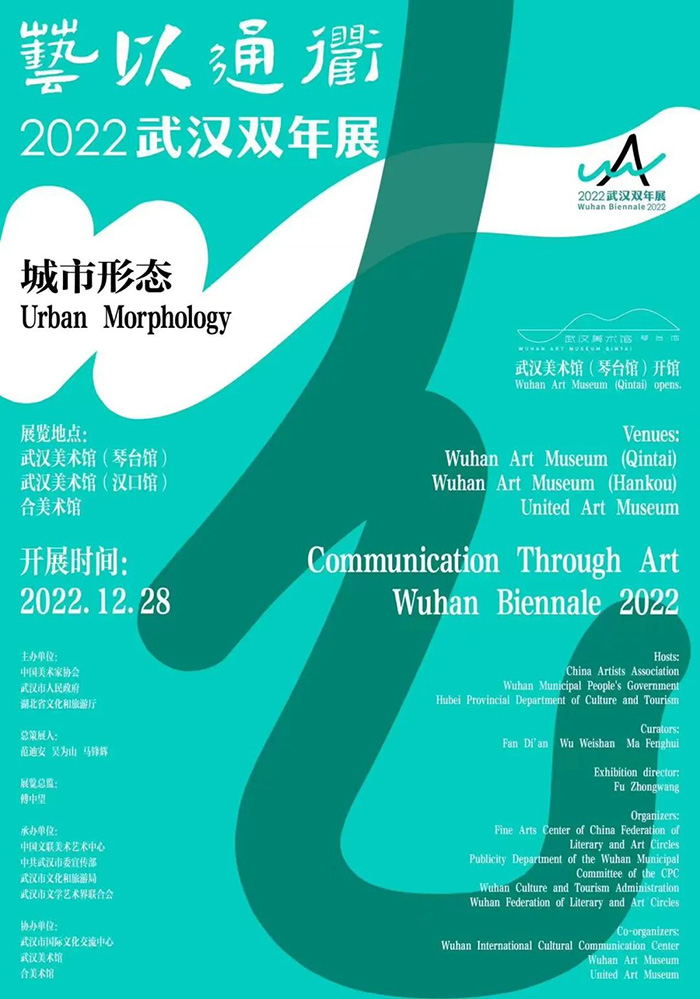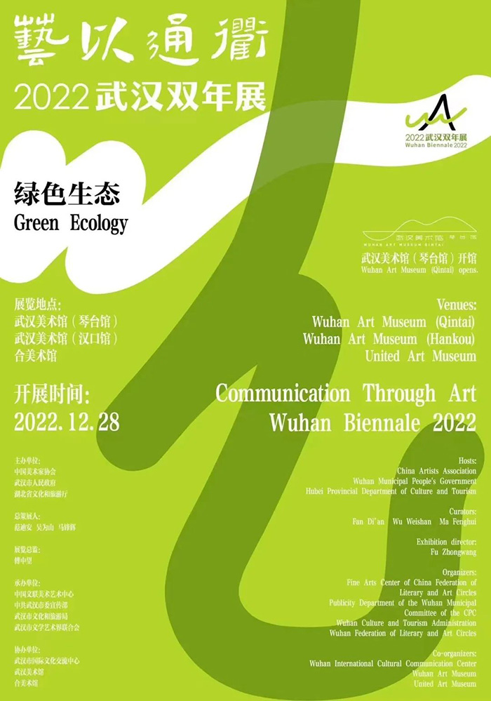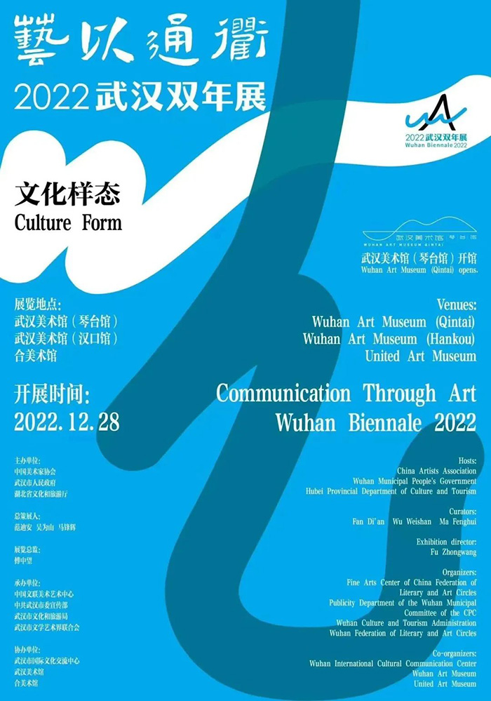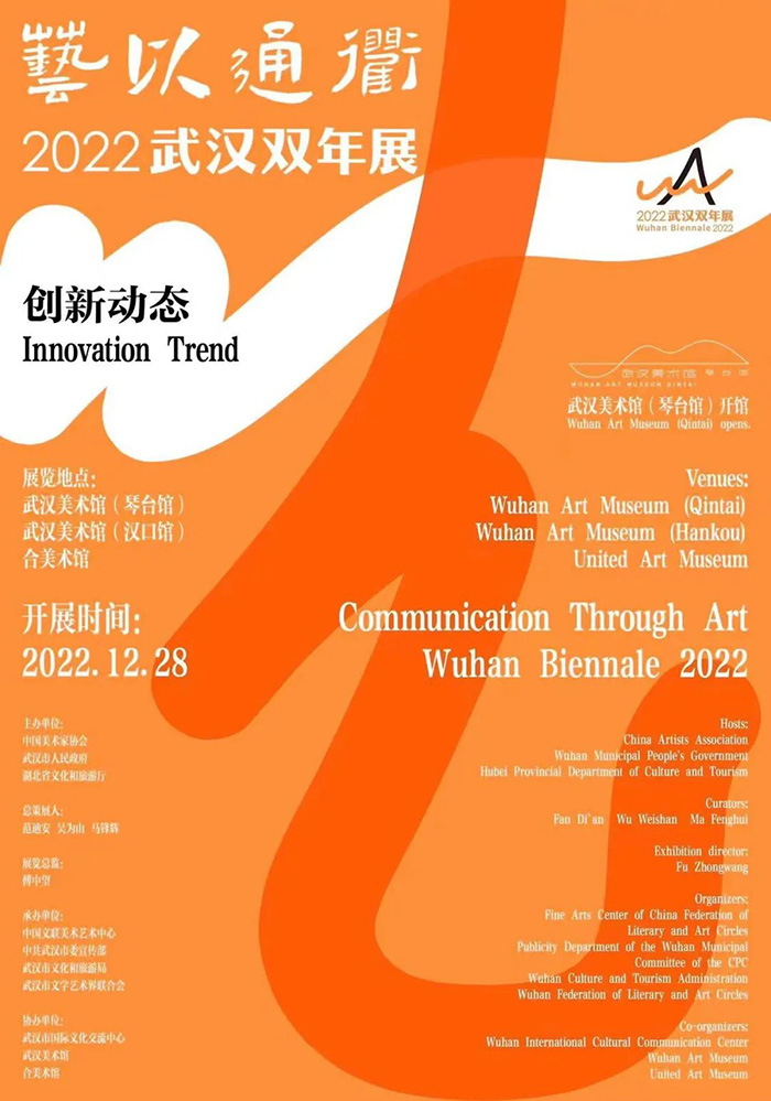 2022武汉双年展由中国美术家协会、武汉市人民政府、湖北省文化和旅游厅主办,中国文联美术艺术中心、中共武汉市委宣传部、武汉市文化和旅游局、武汉市文学艺术界联合会承办,武汉市国际文化交流中心、武汉美术馆、合美术馆协办。为体现2022武汉双年展的国际视野、中国情怀和武汉特色,组委会共邀请了20余位国内顶尖艺术家和专家学者,组建策展团队,并确定中央美术学院院长、中国美术家协会主席范迪安,中国美术馆馆长、中国美术家协会副主席吴为山,中国美术家协会分党组书记、驻会副主席马锋辉为总策划。