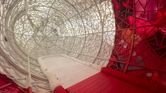全新开馆的武汉美术馆(琴台馆),是2022武汉双年展的主场馆,是武汉继琴台大剧院、琴台音乐厅之后在月湖之畔打造的又一大型公共文化设施。武汉美术馆(琴台馆)全馆分地下一层,地上二层,共5个展厅,展厅总面积约10000平方米。其中,A展厅空高超过23米,是目前国内空高最高的单个展厅,给大型艺术作品提供了充裕的施展空间。这里将展出“文化样态”“城市形态”“创新动态”三大专题,全景呈现全球当代艺术的魅力。
