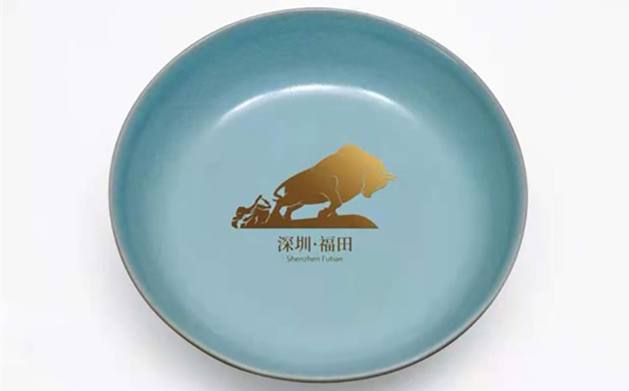 汝窑牛盘 以深圳“福田”为主题的汝窑作品
