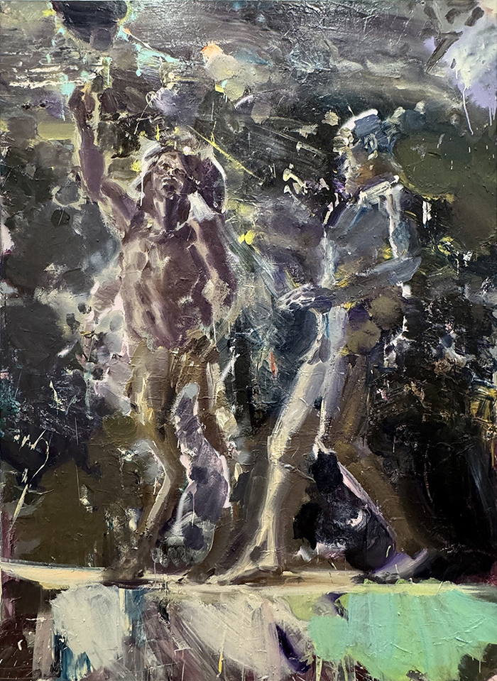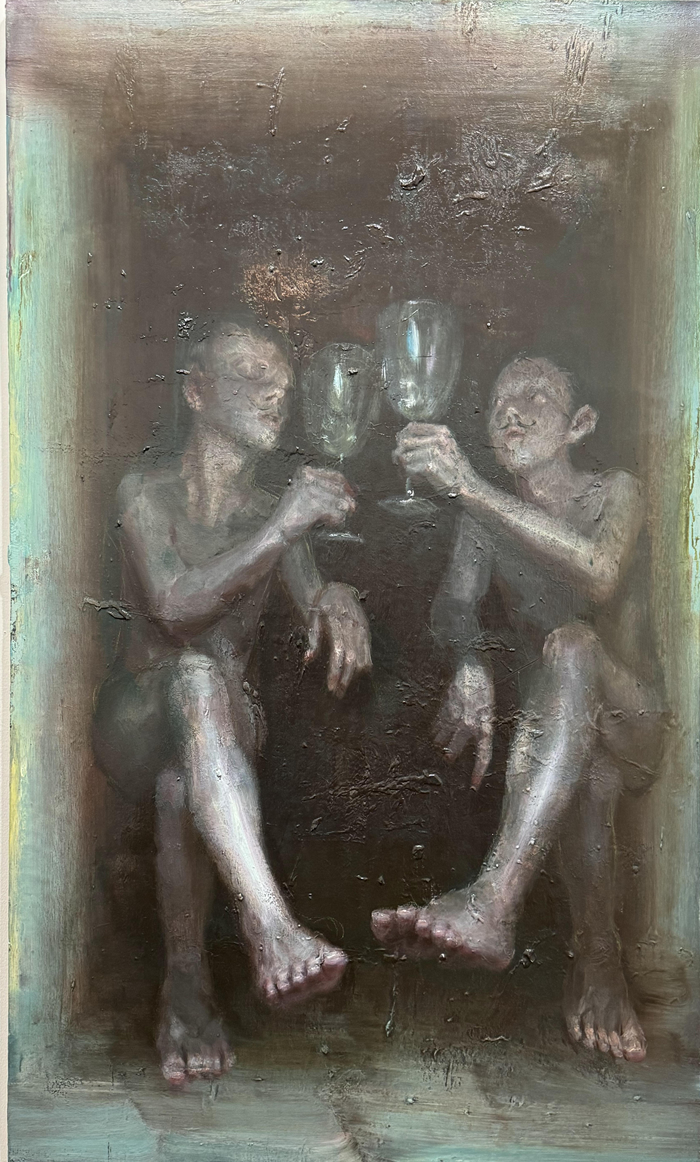 尽管韦嘉的早期作品与当代创作在风格上存在巨大差异,但从本质上看,他的艺术始终超越各种现实主义范畴,更接近超现实主义绘画。他的作品无论在内容还是情绪上,都深深植根于自我内在的精神世界,并带有挥之不去的古典情怀、孤独感与英雄气质。即便是近年来表现性极强的《花园》系列,也未彻底跨入完全脱离叙事的抽象表现主义。哪怕画面因大笔挥洒而模糊不清,人物的肢体与表情趋于抽象,我们依然能感受到——韦嘉始终以自我内心为原点,由内向外地体验他人与世界。