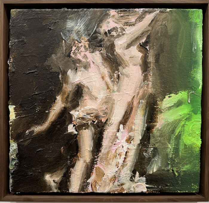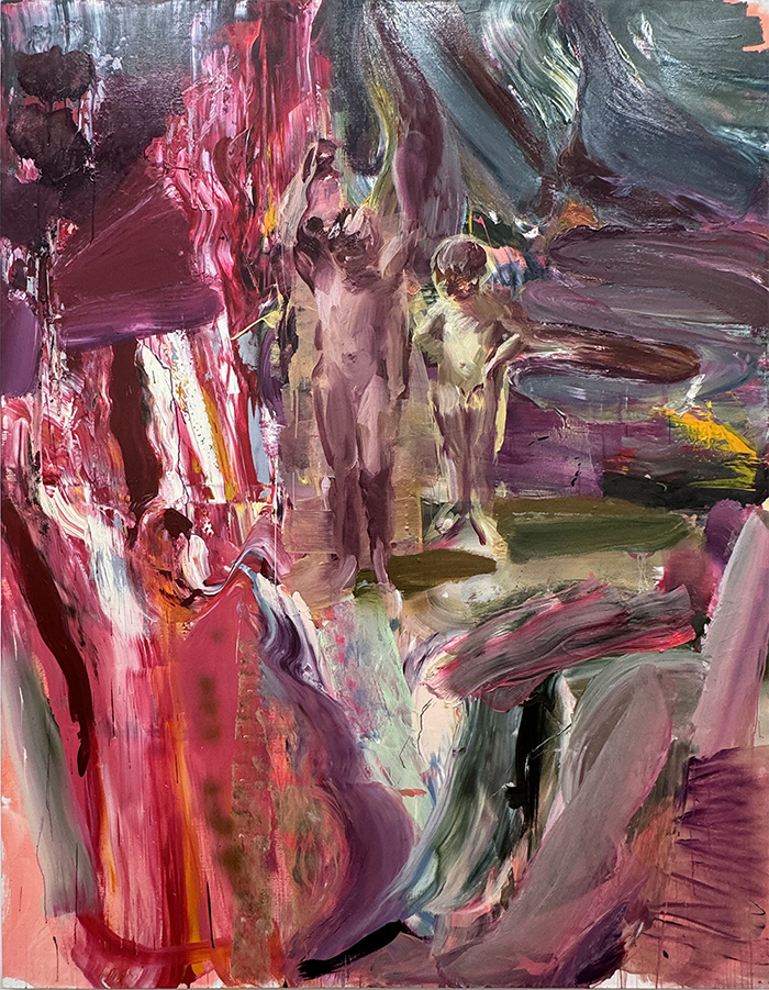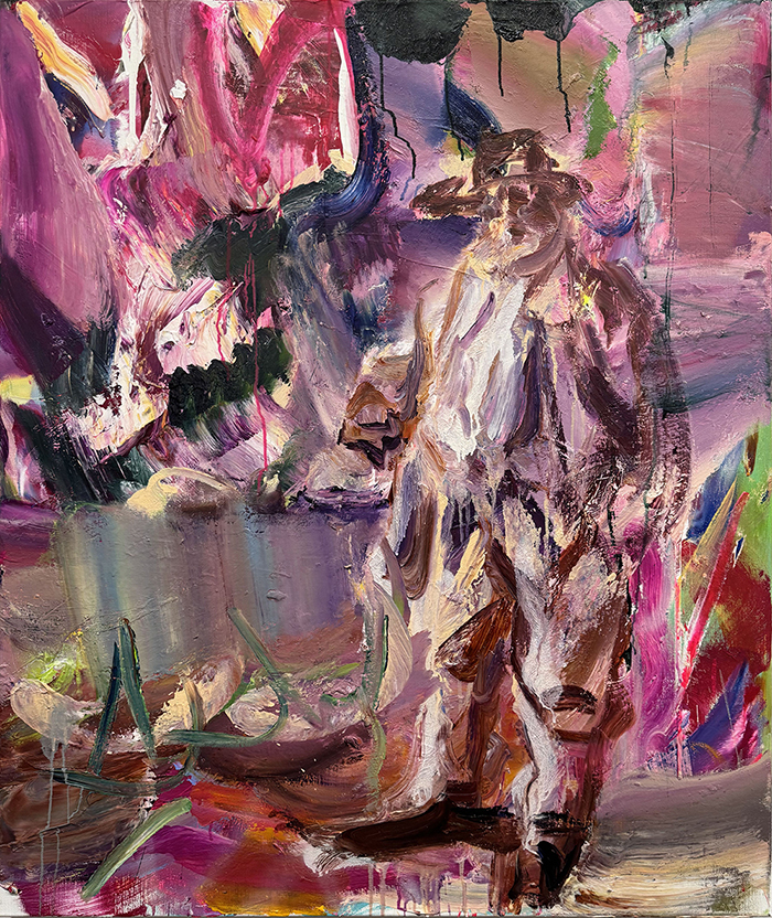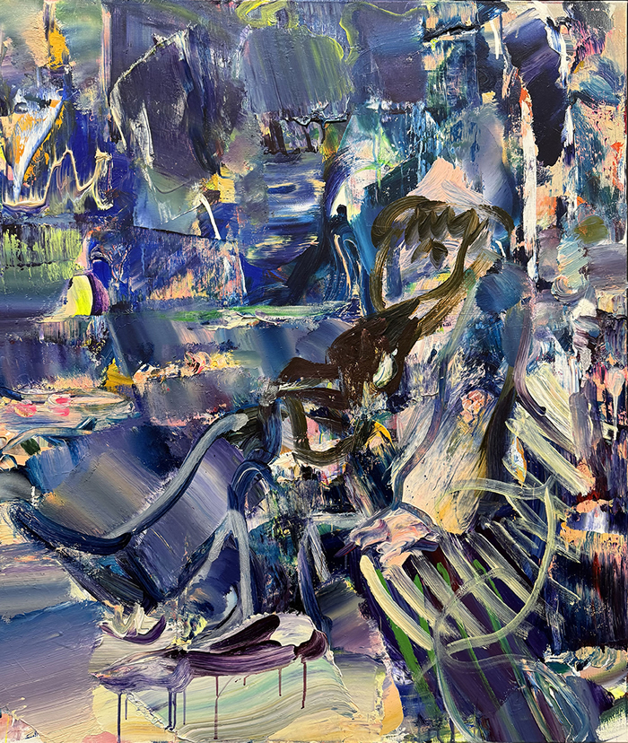 在韦嘉最新作品中,身体不再是个体孤独的存在,而是化作连接艺术史基因的能量载体。莫奈、弗洛伊德、大卫·林奇等各种形象,都在韦嘉建构的世界中获得再生。当浓厚的丙烯颜料岩层般的厚度覆盖画布,当艺术家用肢体运动和能量代替画笔的精确控制,绘画不再是身体的再现,而成为身体行动的转译。那些模糊了生物性与物质性的形象,既是对消费时代身体异化的抵抗,亦是对绘画本体的呈现——在颜料与血肉的同频震颤中,在艺术家毅然突破图像叙事的框架,升华为对存在本质的追问。