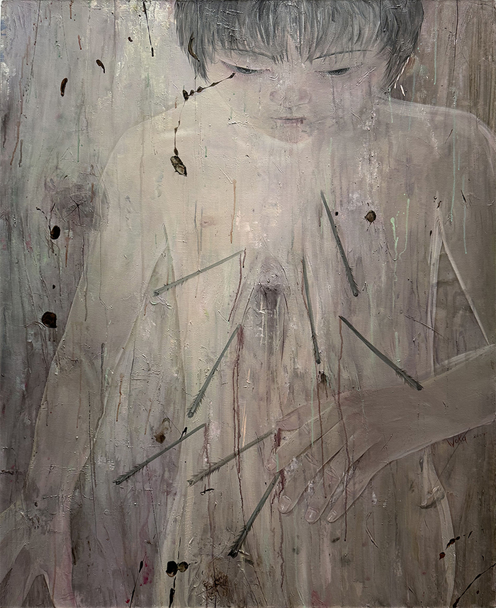 在韦嘉坚定志向考取四川美术学院附中时,却意外落榜。尽管他选择复读,并在第二年以第一名的成绩如愿考入川美附中,但最初的失败给他留下了难以磨灭的不安全感。随后,他又经历了身体受伤、亲子分离等人生变故,这些或大或小的心理创伤,与他对理想与现实世界之间冲突的持续感知,共同塑造了韦嘉高度敏感的艺术触觉,他的创作也逐渐走向高度个人化,聚焦于内在精神世界的表达,形成了自己独特的艺术风格。