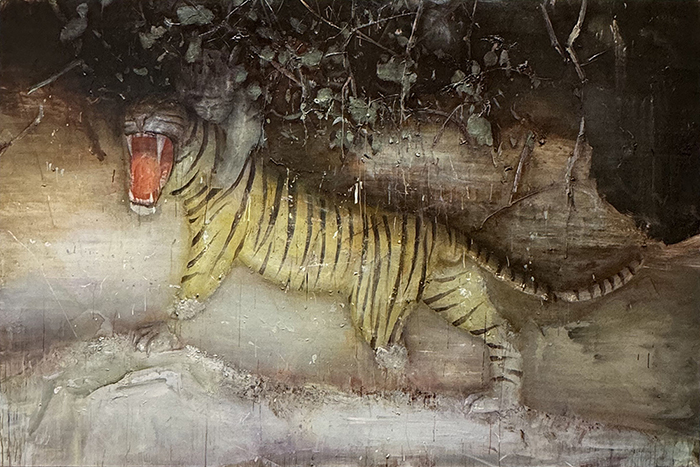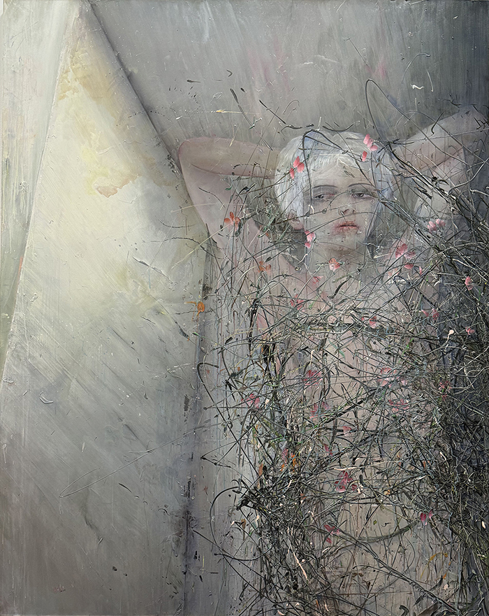 韦嘉的个性中始终有相反的两端,或者说是一体两面,一方面他喜欢在艺术上表现内心的敏感和不安全感,另一方面他忠于当下内心的感受,不愿意被过去的自己和观众的眼光所裹挟,哪怕是他广受欢迎的作品他也不愿意重复,他的每个阶段的新作都是过往风格的颠覆。这种艺术风格的变化也是随着艺术家自身的成长,心境的变化,社会身份的变化和对外在世界的认知不断演进,这是一种面貌上由静态向动态、简约向繁复、描绘向表现的变迁。绘画质感上从干爽清冽,到潮湿黏腻,再到浓稠厚重的过程,从绘画心理上是从个人自语到与他人对话,最终到人类自身的表述。这一过程就像一条小溪,在经过幽谷河道的不断转向流变之后,最终汇集到宽广的河流。